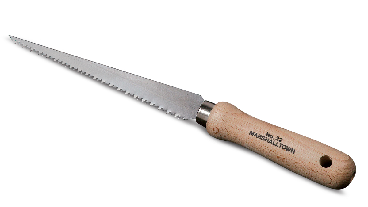 Drywall saws are made of heavy steel and won’t bend when driven into the drywall. They aren’t as sharp as wood saws, and they have widely set teeth for aggressive cutting.