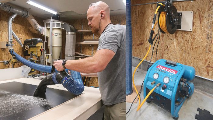 The ceiling I did finish with drywall. At 8 ft. 6 in., the ceiling is a little low sometimes. I did have to bump up the area above the dust collector, which is quite tall. With light fixtures and dust-collection piping, it can be a bit tight when moving sheet goods and other long materials around in the shop. Still, raising the ceiling was a cost and complexity I decided against, and I don’t regret it yet.